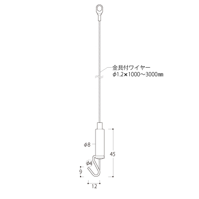 ・金属付ワイヤー(K-W)とロックフック(MH-M6)の