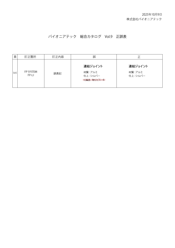 現在発刊中の総合カタログVol.9に一部誤りがございました。